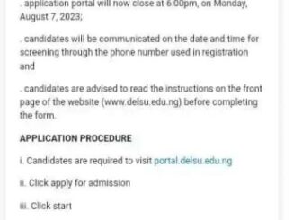 Delta State University, Abraka (DELSU) is officially announcing the sale of 2023/2024 post UTME screening Form.