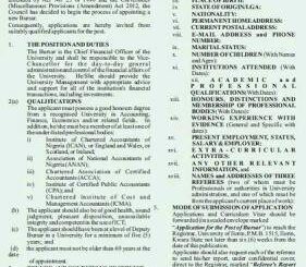The University of Ilorin, UNILORIN is recruiting for the position of Bursar in the ongoing school recruitment. Applications are welcome from interested applicants as the position will be vacant from November 1st 2023.