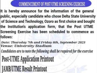 Delta State University of Science and Technology Ozoro (DSUST) Post UTME Screening Form for the academic session of 2023/2024 is now selling.