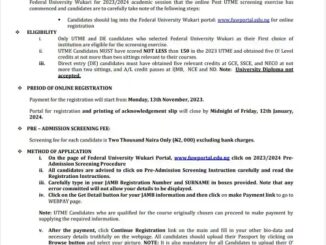 The University of Lagos, UNILAG has announced the sale of online registration form of Post-UTME Screening for the 2023/2024 academic year.