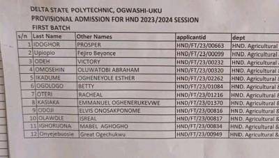 Applications are invited from all interested and qualified candidates for Admission into the following NBTE accredited HND Programmes of Delta State Polytechnic, Ogwashi-Uku for the 2023/2024 Academic Session: