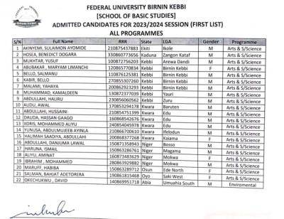 The Federal University Birnin Kebbi (FUBK) has announced the release of 2022/2023 academic sessions Postgraduate Admission List.