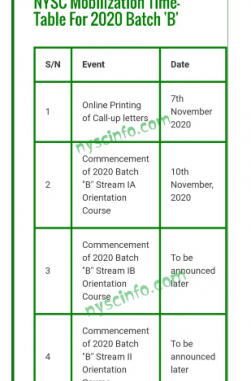 This is to inform the general public and graduates hoping to join the NYSC train that the 2019 mobilization Timetable of Batch B Stream 2 is officially out online.