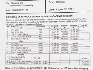 The Federal Polytechnic Nekede, Fed Poly Nekede has officially released the amount payable as school fees by ND and HND students for the 2019/2020 academic session.