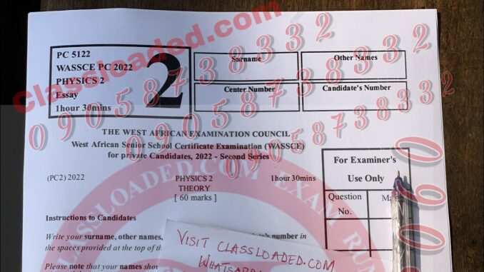 WAEC GCE Physics Expo 2024 > The Waec for Working class also known as WAEC External Exam has commenced in Ernest, and today is Physics Exam. WhatsApp 09060948147 only for Real Gce Yoruba Language Answers 2024.