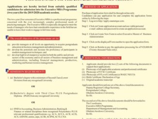 Applications are invited from suitably qualified candidates for admission into the Obafemi Awolowo University, Ile Ife (OAU) executive MBA Programme for the session of 2019/2020.