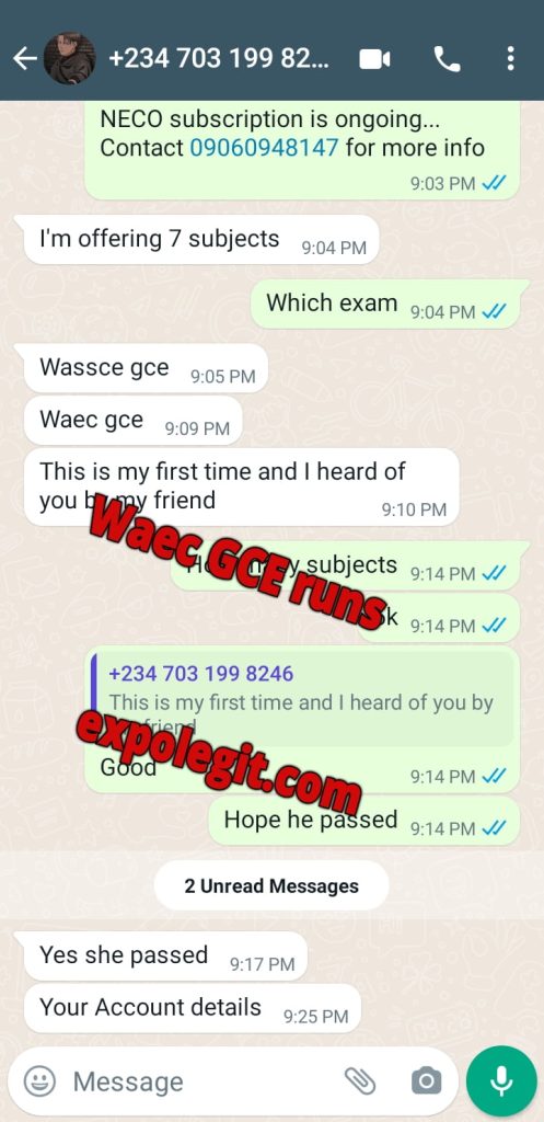 I have recorded a lot of candidates stranded, it’s only Mr Legit that helped them to excel and escape failure. Subscribe to us and get good result.